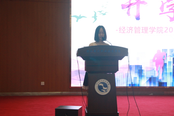 老生代表16会计1班翁双月鼓励到:大学是梦想开始的地方,这里不是努力的终点,而是奋斗的开始,应充分利用图书馆丰富的藏书、数据库里的学习资料及各类学术讲座,努力学习,为实现未来的目标增添助力;从王者峡谷、吃鸡战场、抖音视频中抽身,投入到丰富的校园生活,在田径场、攀岩社、篮球馆一展身手,在学生会、各社团锻炼自己,提升能力;年轻允许失败,尝试就是胜利,应勇敢迎接挑战。