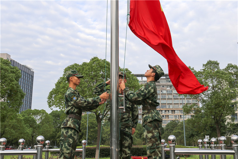 校园国旗护卫队雄姿英发,昂首阔步,走向升旗区域。这是一支“特殊”的队伍,成员均为退伍复学大学生,他们的飒爽英姿,早已成为清晨校园里最亮丽的一道风景线。