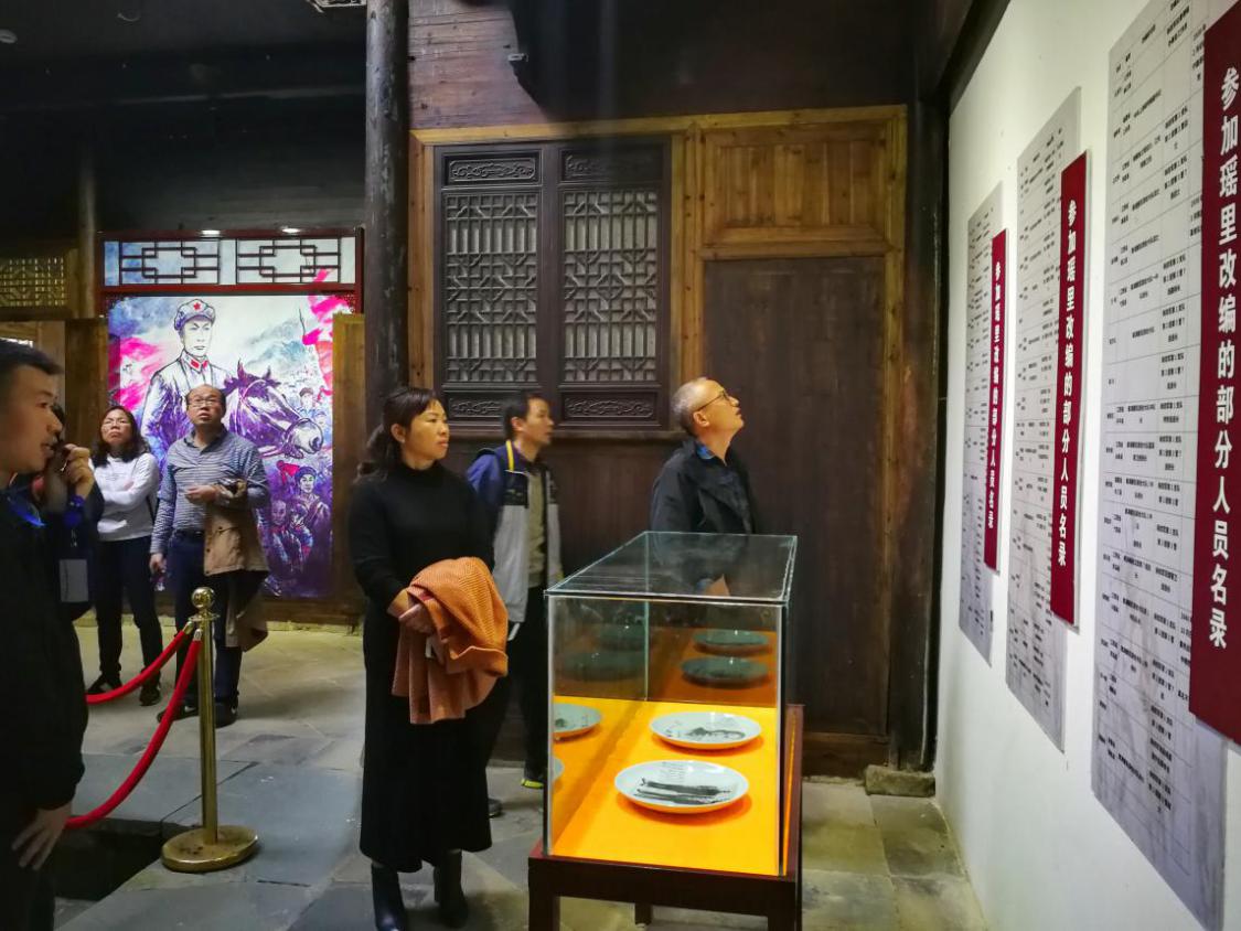在陈毅故居中,党员们仔细了解“七·七事变”·后,在国共合作的背景下,南方八省十四个地区的红军游击队改编成国民革命军新编第四军的历史和感受当年陈毅在瑶里指导改编的相关场景。