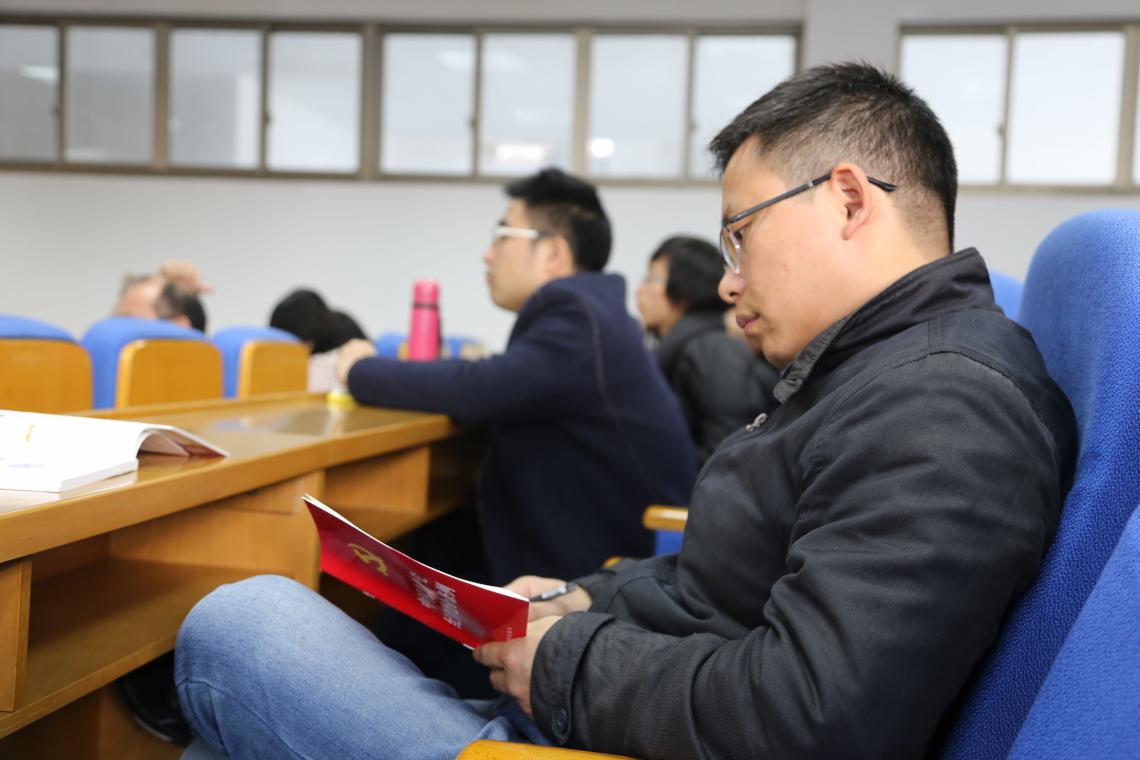 11月30日,机关第四党支部全体党员大会在阶东1-1举行。支部书记徐荆带领全体学员逐字逐句学习了修订后的《中国共产党纪律处分条例》和《中国共产党支部工作条例》。