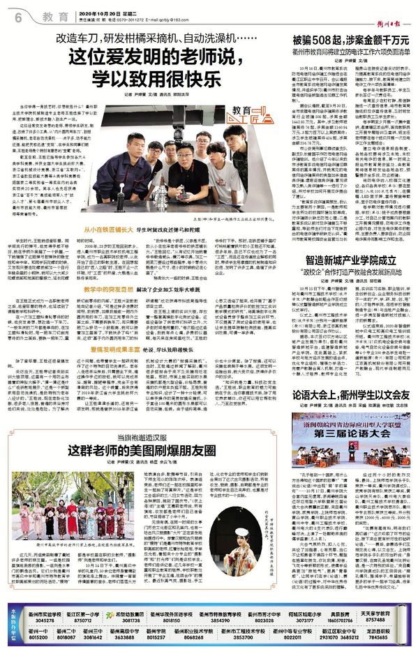 《衢州日报》:这位爱发明的老师说, 学以致用很快乐