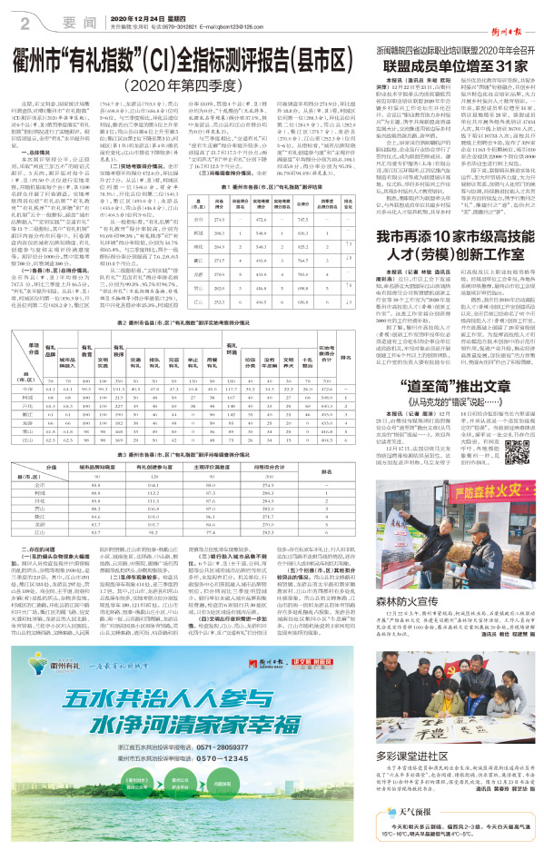 《衢州日报》2020年12月24日 要闻版  报道 通讯员 朱峻 欧阳洪萍