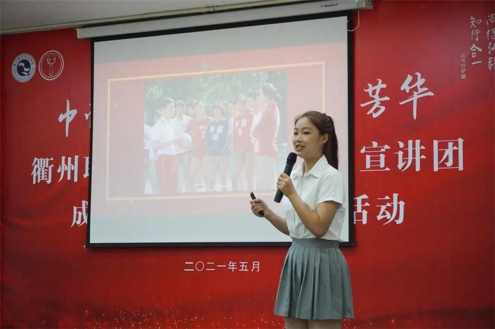 宣讲团成员沈贝为大家讲述为中华崛起而拼搏的女排精神