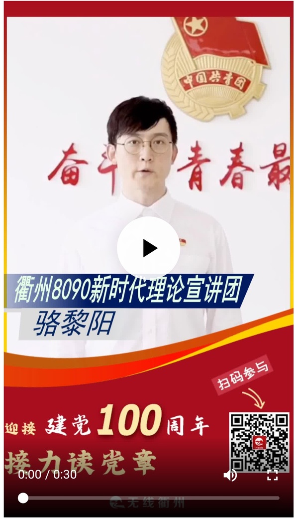 《无线衢州》:接力读党章丨衢州8090新时代理论宣讲团 骆黎阳