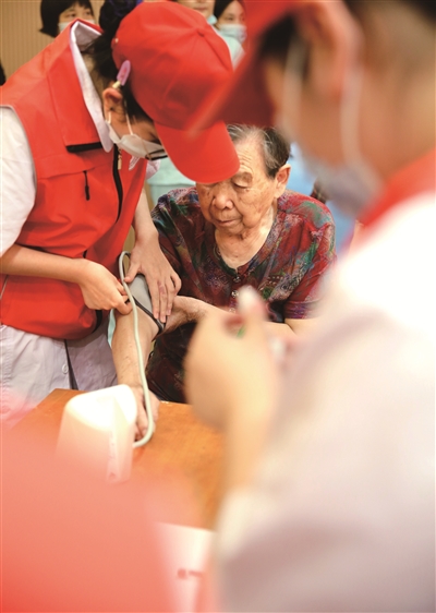 大学生慈善志愿服务队为老年人免费提供测血压、血糖,肖像摄影等服务,并根据服务对象需求,拓展个性化服务内容,构建新时代“慈善助老”公益新模式。
