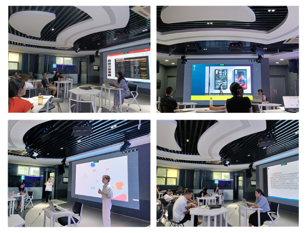暑期参加国培项目老师分享了各自培训的内容,张佳贺老师着重讲解了如何利用哩布哩布绘画模型进行现代设计创作;卢晓燕老师介绍了目前比较流行的AI大数据模型,并分享了这些模型可以如何帮助老师们开展教科研工作;梁仪琳老师分享了最新的短视频制作工具,并演示了如何借助AI模型完成宣传片的制作;胡雅倩老师带来了短视频创作与运营、融媒体内容策划与制作两项职业技能竞赛的最新政策和未来的备赛方向,这对老师们指导学生比赛具有实际的意义。
