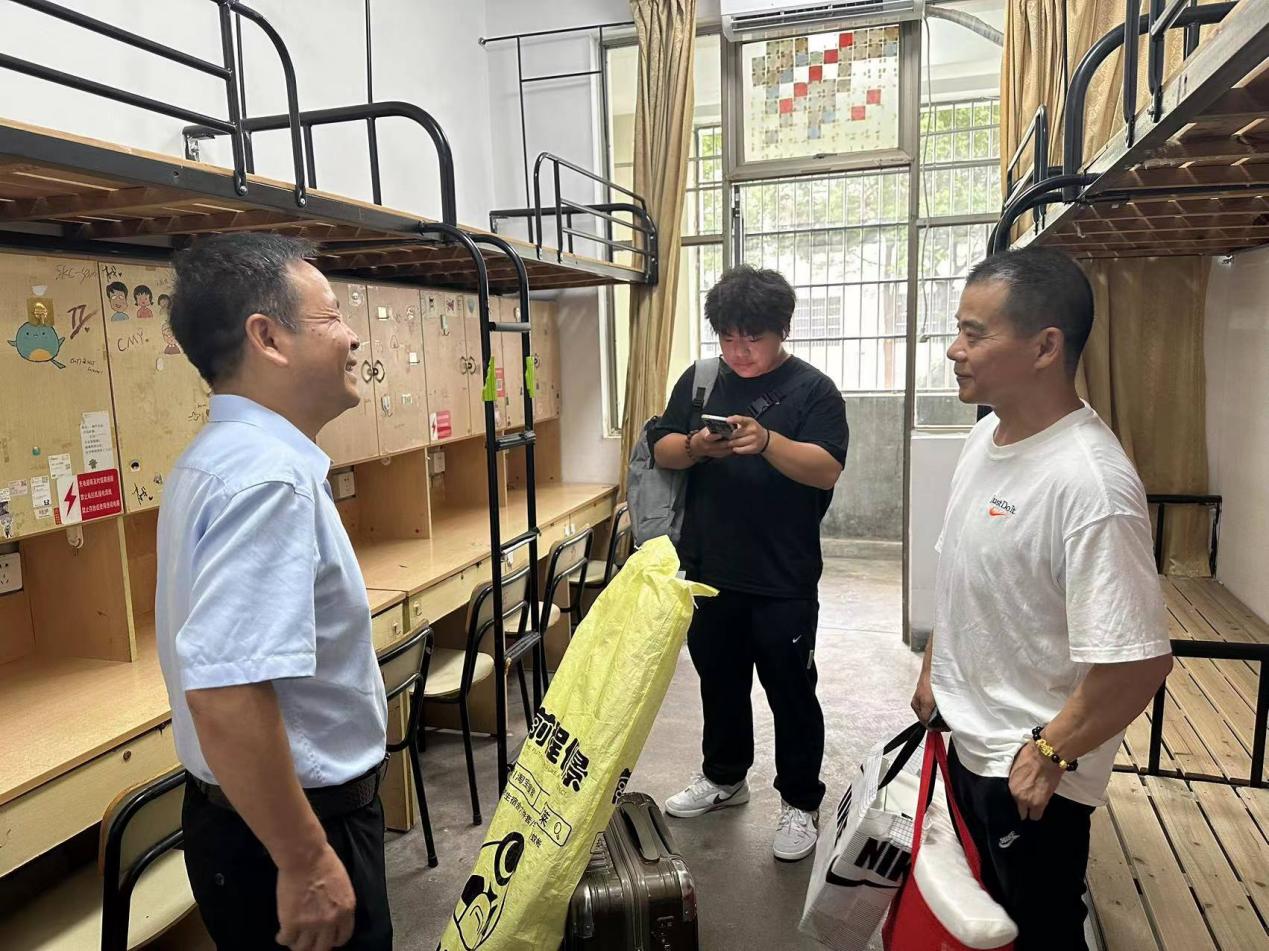 迎新当天清早,医学院院长邱惠萍来到迎新工作现场,指导具体工作,叮嘱注意事项,并为现场迎新师生加油鼓劲。医学院党总支书记余文富深入新生寝室,与报到新生亲切交谈,并送上问候与祝福。于新生而言,医学院领导们的亲切关怀,婉如春风化雨,润物无声,。
