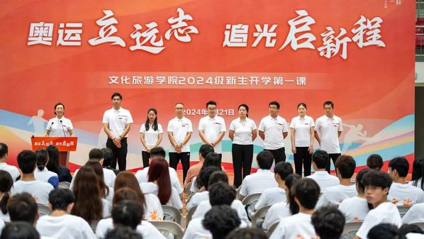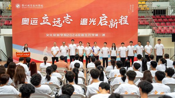 921日上午,衢职院文化旅游学院举行了2024级新生开学第一课活动。为弘扬奥运精神,激励新文旅人立下远大志向、追求卓越未来,学院特别邀请巴黎奥运会羽毛球混双冠军、衢州市城市形象大使、我校校外指导教师黄雅琼来到现场。学院院长郭大勇、党总支书记李威、副院长彭晓倩及学院全体教职工参加。本次开学第一课以“奥运立远志,追光启新程”为主题,现场氛围热烈,同学们反响积极。