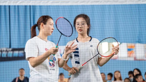 黄雅琼讲授了羽毛球运动知识,进行了羽毛球技术示范、实战模拟、答疑交流等活动。