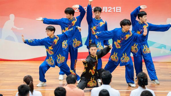 师生见面会开始前,校武术队和体育舞蹈队带来了暖场表演。