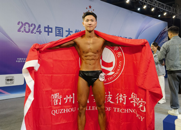 我校健身健美队由常小龙老师带队,文化旅游学院23级休闲体育专业1班邱子蓄同学参赛。