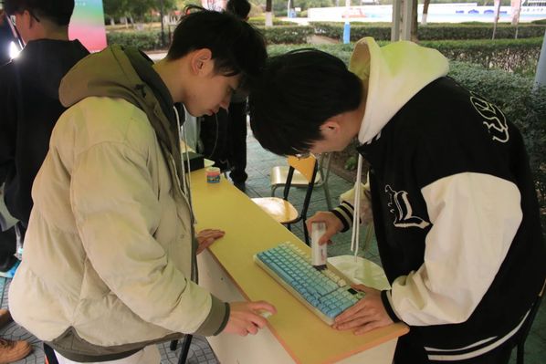 “机械键盘清理需用软毛刷温柔对待,就像修复Bug需要耐心。”志愿服务区内,一群“键盘医生”正为40余台设备进行深度清洁。从拆卸键帽到紫外线消毒,志愿者们手持专业工具,边操作边科普:“巧克力键盘用酒精棉片擦拭最便捷”“硅胶防尘垫能延长使用寿命”。活动现场欢声不断,有同学打趣道:“清洁后的键盘打字如行云流水,代码效率都翻倍了!”